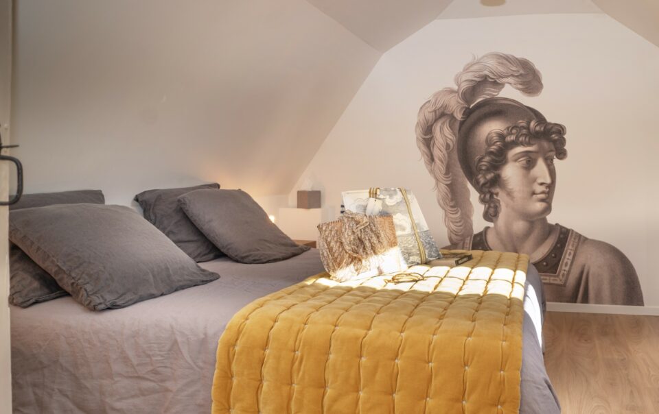 Cette chambre mansardée est située au deuxième étage de la maison et bénéficie d’une des plus jolie vue sur le jardin